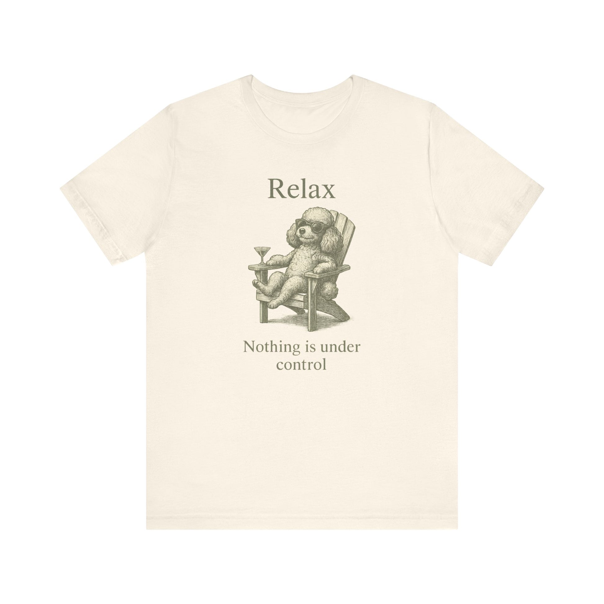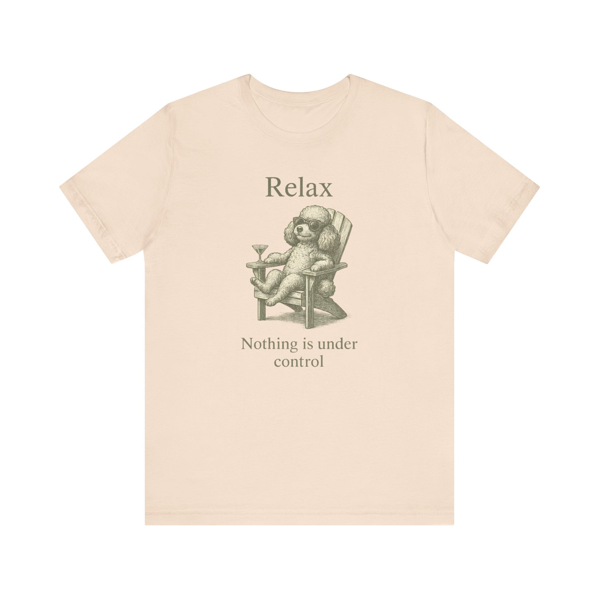 Discover the Vintage Poodle Shirt, featuring a beautifully engraved illustration of a relaxed poodle lounging in an Adirondack chair—martini in paw, sunglasses on, and elegance unmatched. With the clever phrase “Relax – Nothing is under control”, this design perfectly balances sophistication and playful wit, staying true to the Maison Poodle™ essence: Elegance – Timeless – Noble. Crafted with premium fabrics, eco-conscious inks, and a minimalist sage-green palette, this piece elevates everyday wear into a statement of taste.